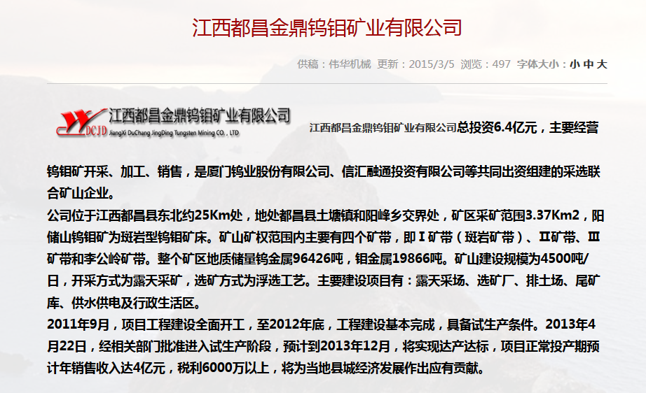 合作單位:長青鎢鉬有限責(zé)任公司